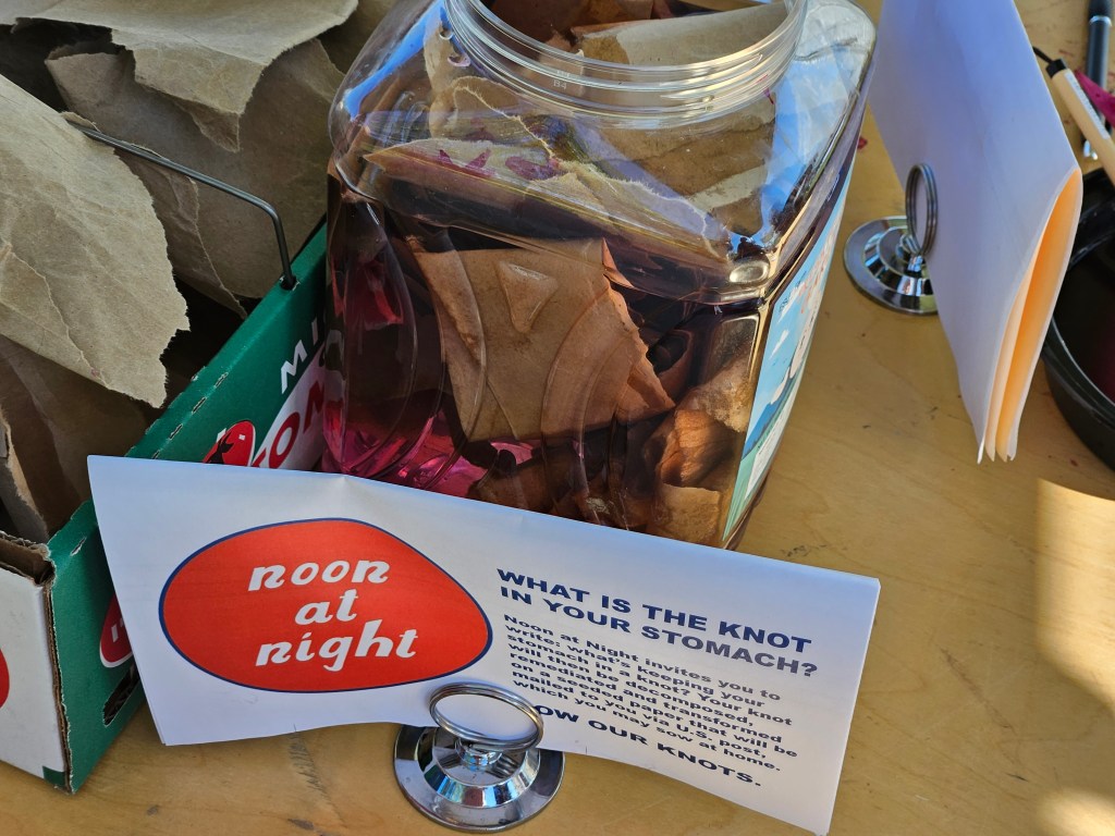 Through experimental performance, Noon at Night connects subversive learners and educators in higher education institutions worldwide in solidarity and interdependence. Incubating within the University of Michigan Student Life Sustainability during the 2024-25 academic year, Noon at Night has situated its study and practice at the intersection of climate emergency, grief and imperialism.’